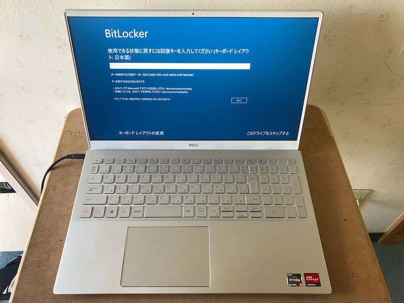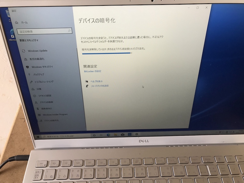 リカバリー後に設定からBitLockerをOFFにします。